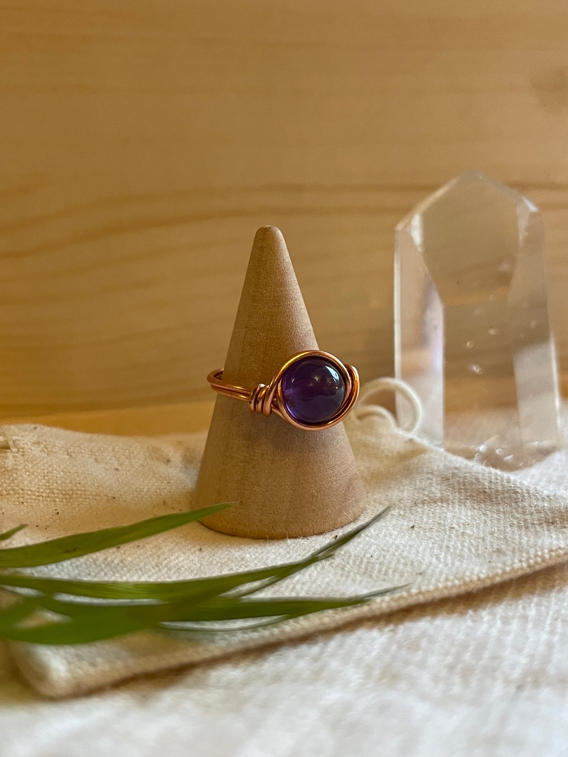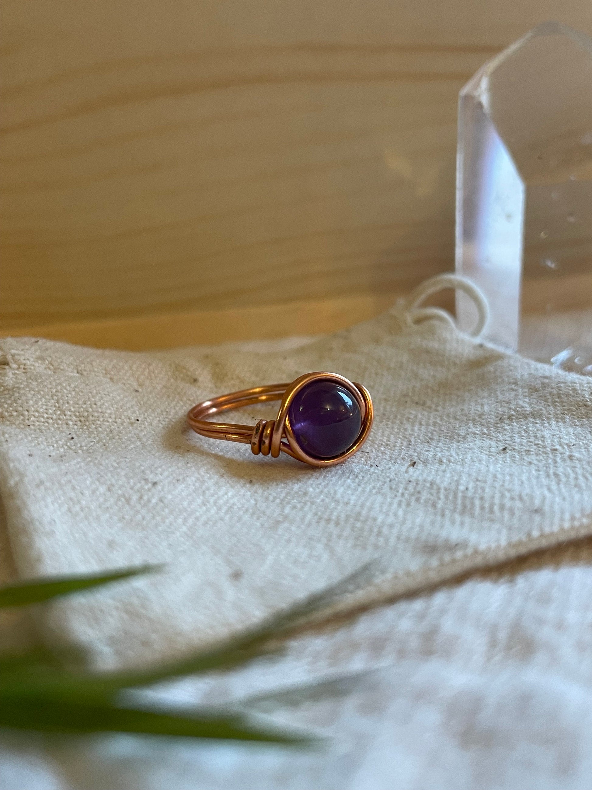 Amethyst ring, Wire wrapped, Healing crystal, February Birthstone, Gift for her